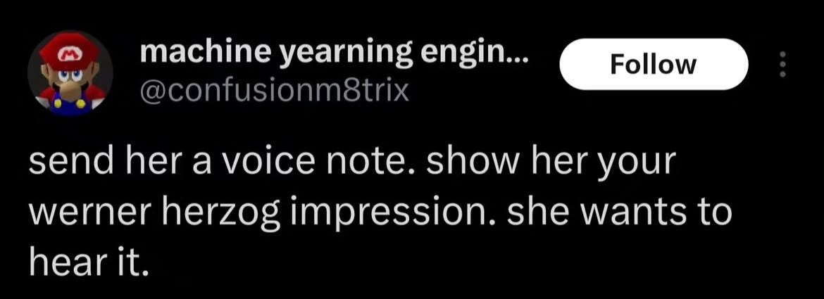 But now, of course, the reason you’re all still reading - my compulsive need to collect and disseminate digital meme trash, which has remained undiminished by my step back from social media. So, please enjoy your curated dive into the hive mind of the internet: