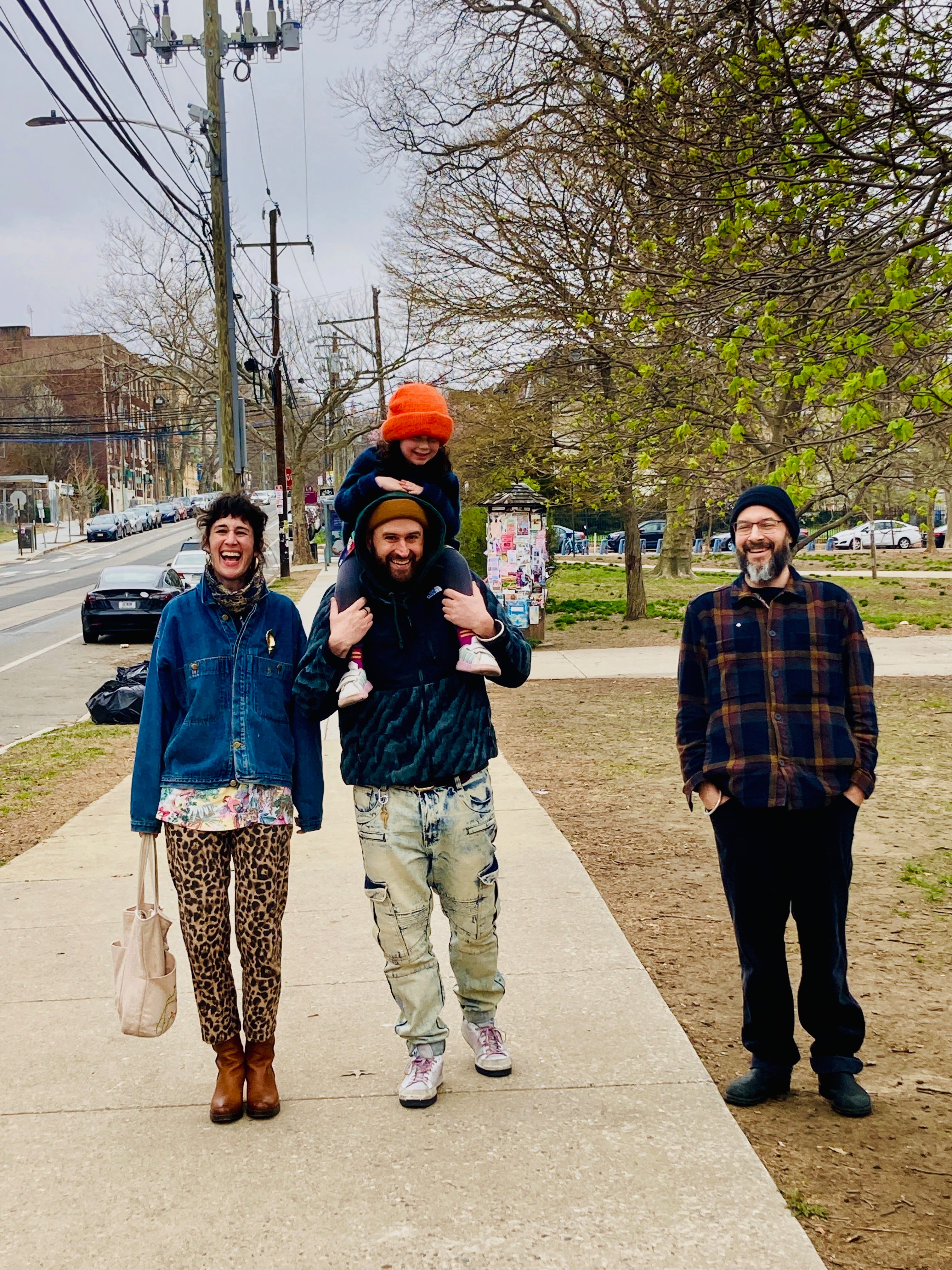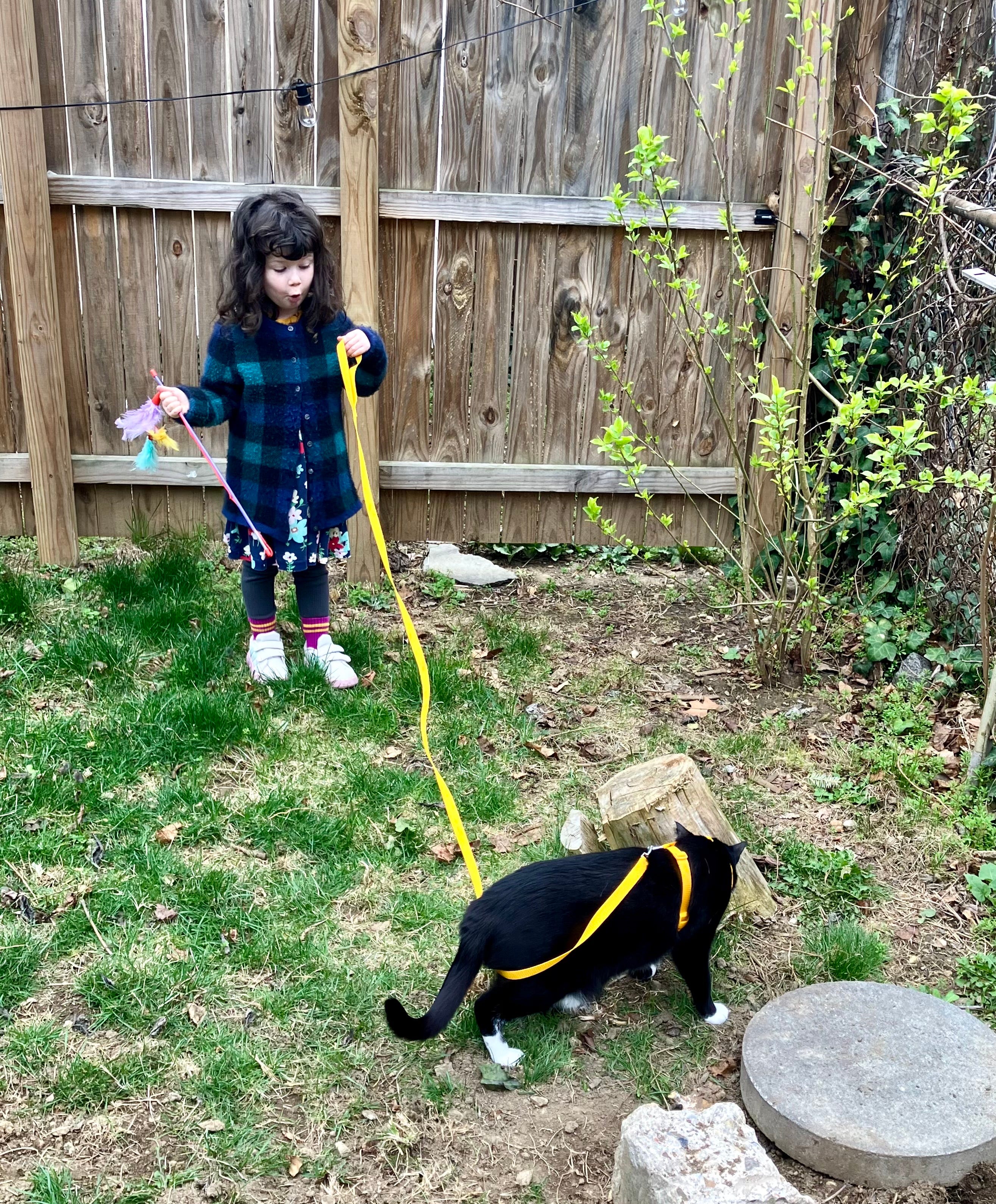 Hello from beautiful West Philly, where the fam is currently visiting Laura’s brother Nate and his partner Sadye. Here is a picture of Naomi walking their cat on a leash: